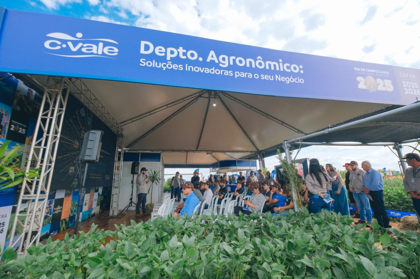 A chuva que caiu na tarde de segunda-feira no Paraná melhorou as condições de umidade do solo e aliviou o calor para esta terça-feira em que teve início o Dia de Campo de Primavera da C.Vale, em Palotina. Esta é a primeira edição com o evento antecipado de janeiro para dezembro. A mudança foi adotada para evitar que o dia de campo ocorresse durante o início da colheita da soja no oeste do Paraná. O evento foi aberto no início da manhã pelo diretor-executivo da C.Vale, Édio Schreiner, outras lideranças da cooperativa e autoridades locais.